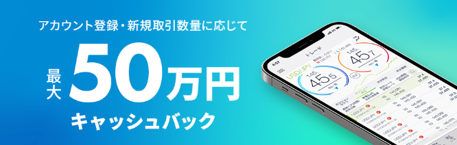 新規アカウント登録+お取引で最大500,000円キャッシュバック